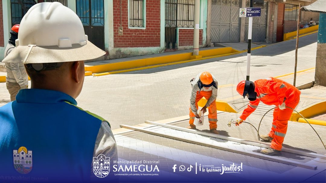 La municipalidad distrital de Samegua continúa con los trabajos del proyecto IOARR “Renovación de vías vecinales en el servicio de movilidad urbana, en pistas y veredas”, el cual presenta un 98% de avance, encontrándose en su etapa final con el pintado de pistas, veredas y sardineles en las calles Misti, Micaela Bastidas, Pachacútec, Inmaculada Concepción y 8 de Noviembre, mejorando la transitabilidad y calidad de vida de nuestros vecinos.