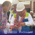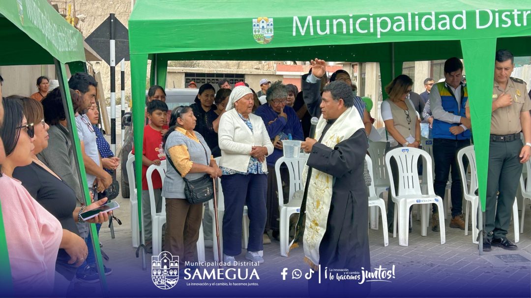 La ceremonia se desarrolló en la intersección de las calles Misti y Micaela Bastidas, donde junto a la población se celebró este importante logro con la bendición de la obra, la develación de placa y un acto lleno de alegría y participación vecinal, reafirmando el compromiso de nuestra gestión, liderada por nuestro alcalde distrital Juan Antonio Eyzaguirre Barrios, de seguir impulsando más obras para el desarrollo y progreso de Samegua.