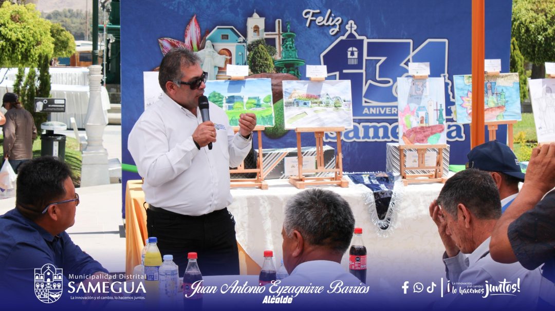 La municipalidad distrital de Samegua, bajo la gestión de nuestro señor alcalde Juan Antonio Eyzaguirre Barrios, realizó la premiación a los ganadores del concurso de dibujo y pintura “Pintando a Samegua”, destacando el talento artístico de nuestros niños, niñas y adolescentes.