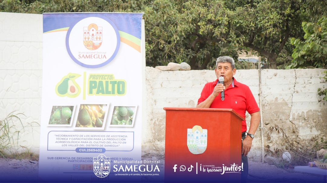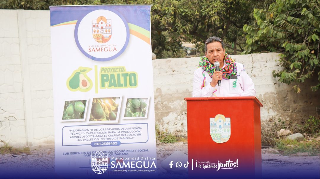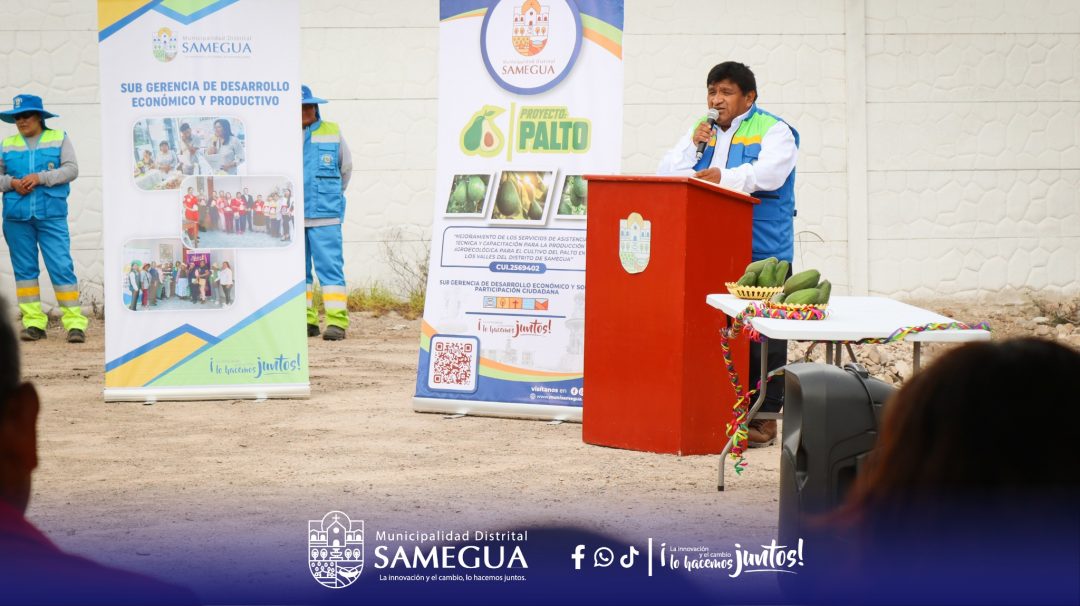 La municipalidad distrital de Samegua, llev贸 a cabo la ceremonia de reinicio del proyecto de inversi贸n para el mejoramiento de los servicios de asistencia t茅cnica y capacitaci贸n en la producci贸n agroecol贸gica del cultivo de palto, beneficiando a 398 productores de Alto Moquegua y Tumilaca, fortaleciendo la cadena productiva de uno de los cultivos bandera del distrito.