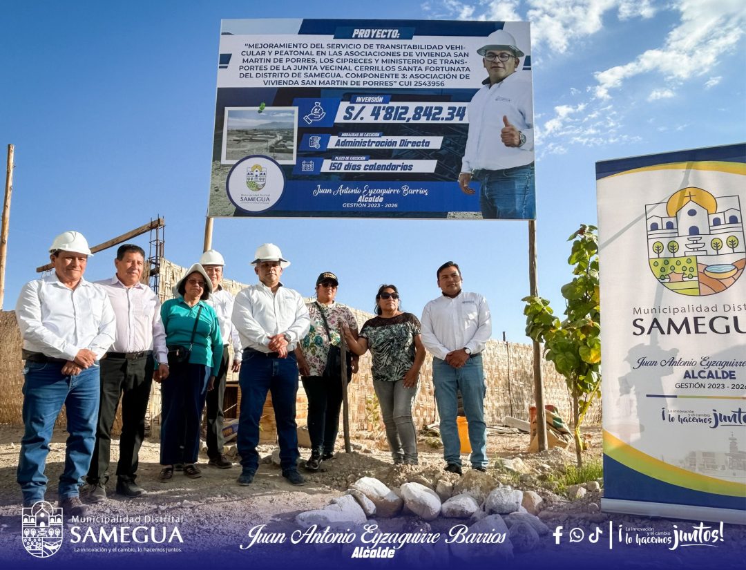 La municipalidad distrital de Samegua dio inicio a la ejecución del proyecto “Mejoramiento del servicio de transitabilidad vehicular y peatonal en las asociaciones de vivienda San Martín de Porres, Los Cipreces y Ministerio de Transportes de la Junta Vecinal Cerrillos Santa Fortunata”, una obra que beneficiará directamente a cientos de familias del distrito.