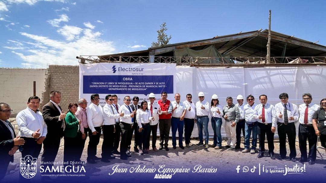 La municipalidad distrital de Samegua, bajo el liderazgo de nuestro señor alcalde Juan Antonio Eyzaguirre Barrios, en representación de la autoridad edil, el regidor Ing. David Vilca del Carpio participó en la ceremonia de inicio de la obra eléctrica “Creación LT 138kV S.E. Moquegua – S.E. Alto Zapata”, realizada en la subestación Alto Zapata, ubicada en Av. Andrés Avelino Cáceres s/n. Este importante proyecto, que congregó a diversas autoridades de Moquegua, beneficiará directamente a más de 80 mil pobladores de los distritos de Moquegua, Torata, Samegua y San Antonio, garantizando un servicio eléctrico seguro, continuo y de calidad para todos.